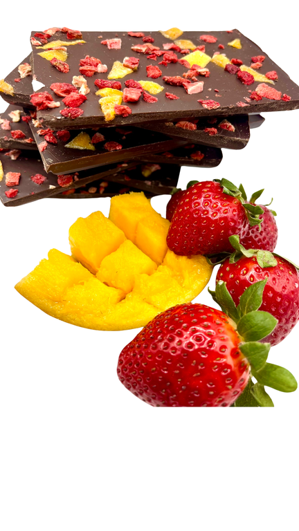 Молочный шоколад манго-клубника